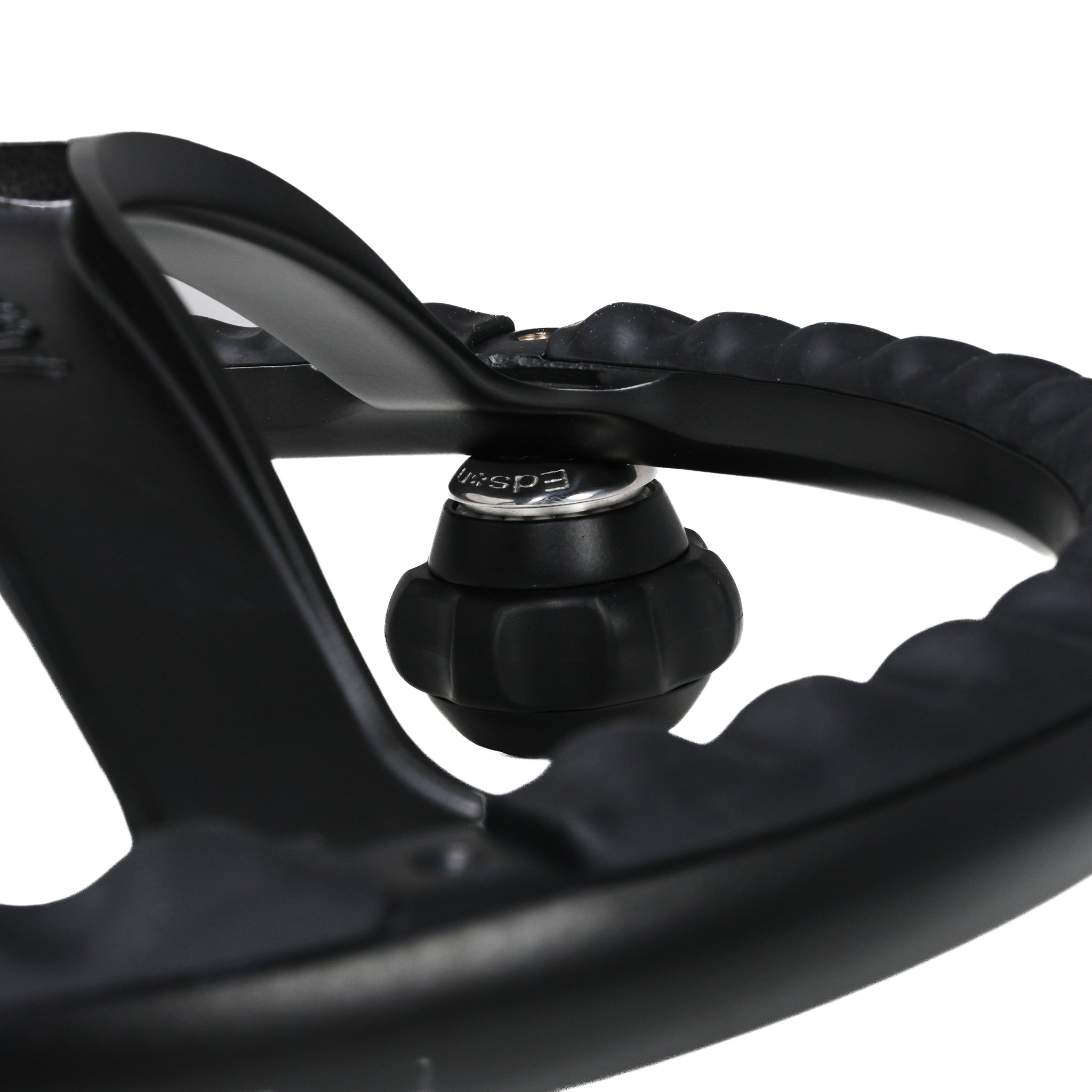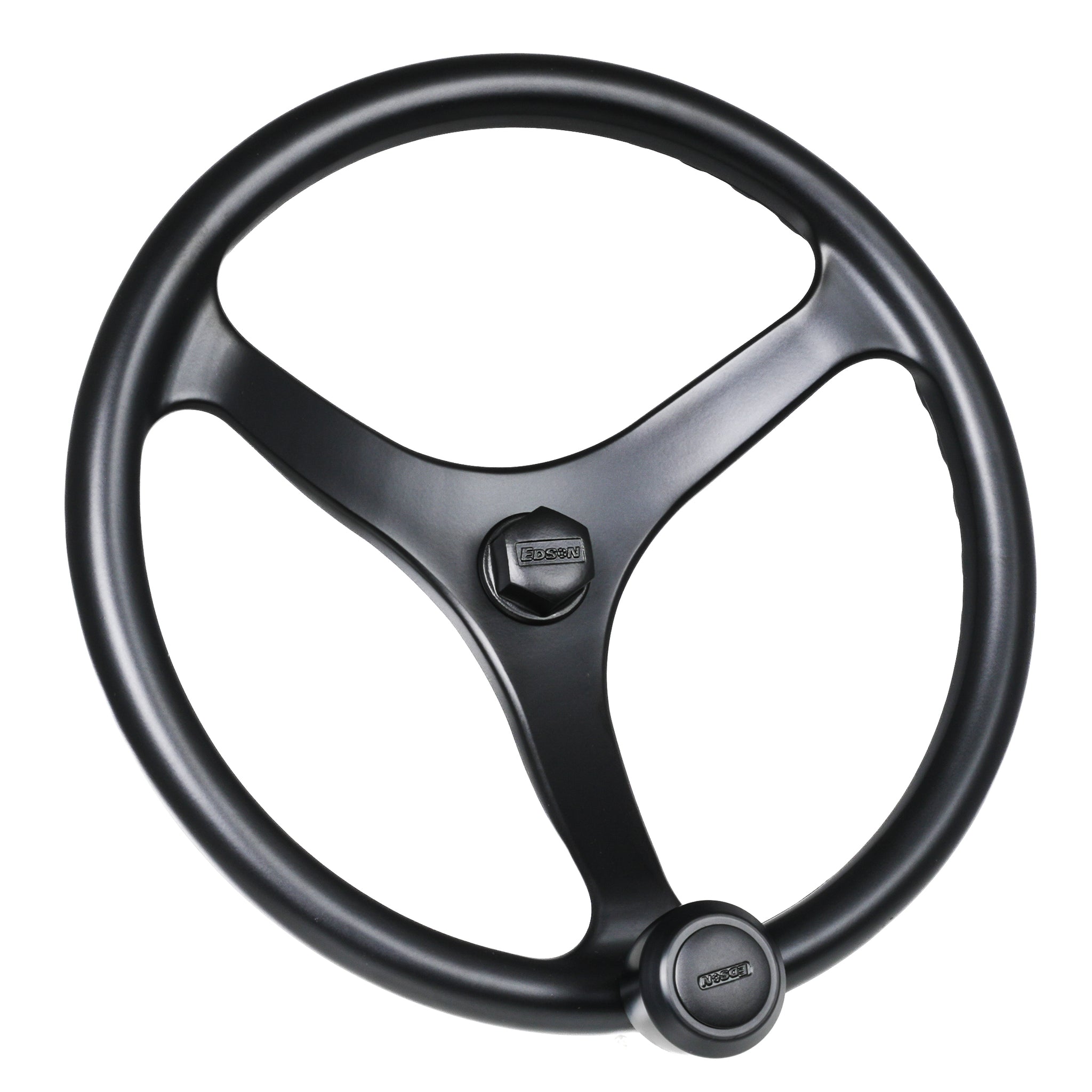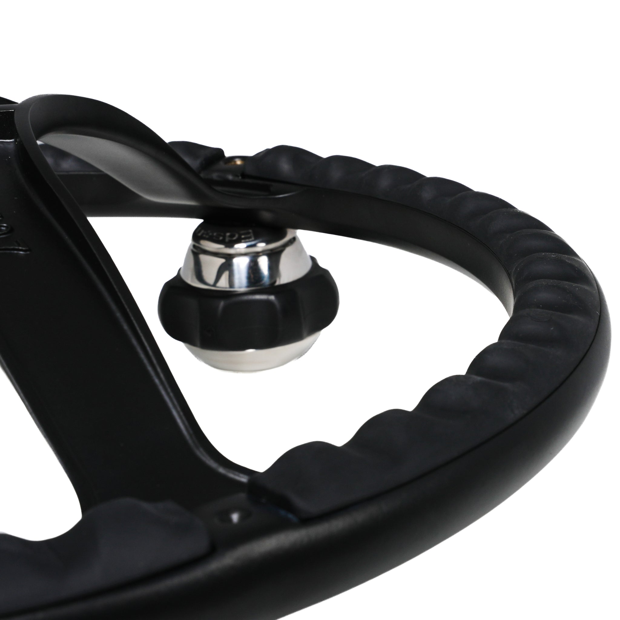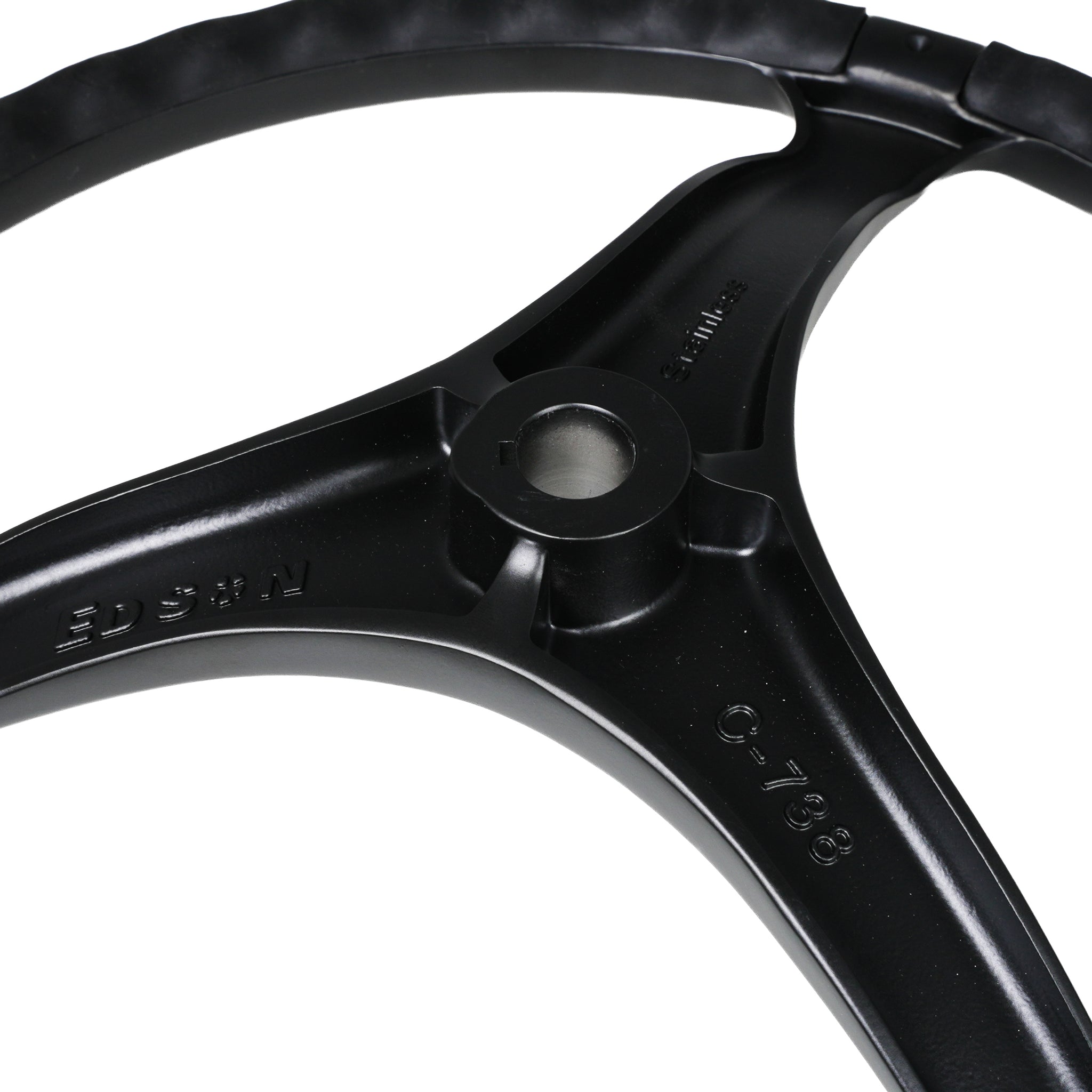 Edson's Special Ops ComfortGrip PowerWheel, with its rugged, durable matte black powder-coat finish, is ideal for a reflection-killing blacked-out upper helm installation, a custom flats skiff in the Florida Keys, or a center console chasing stripers.