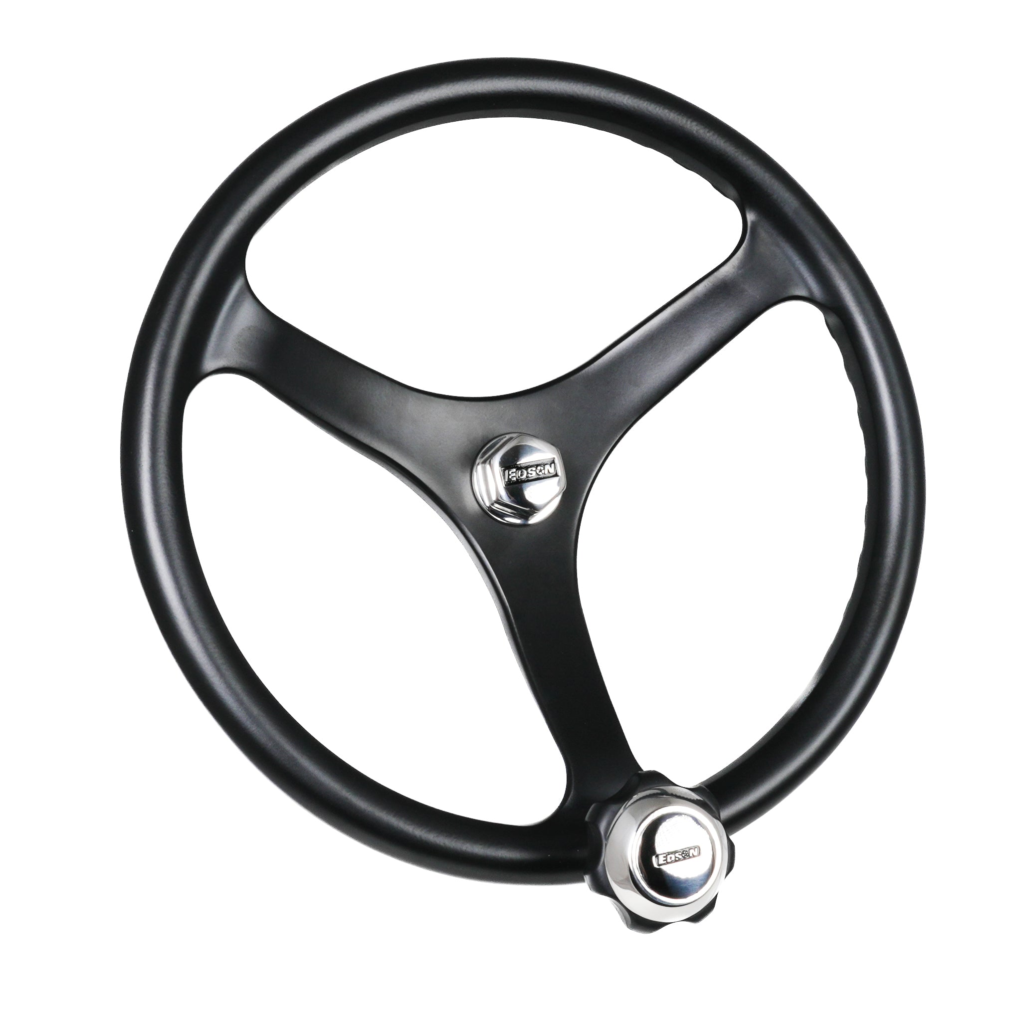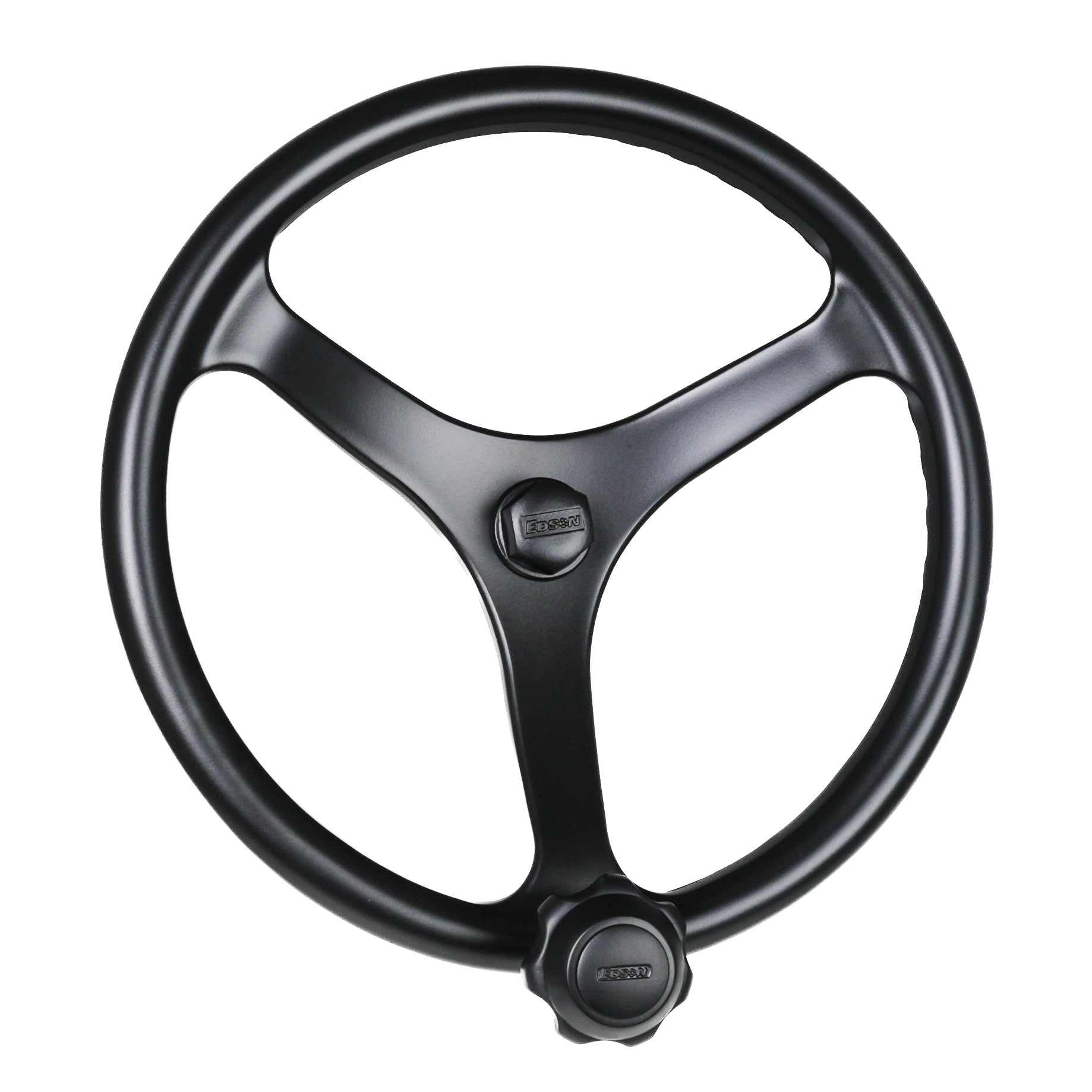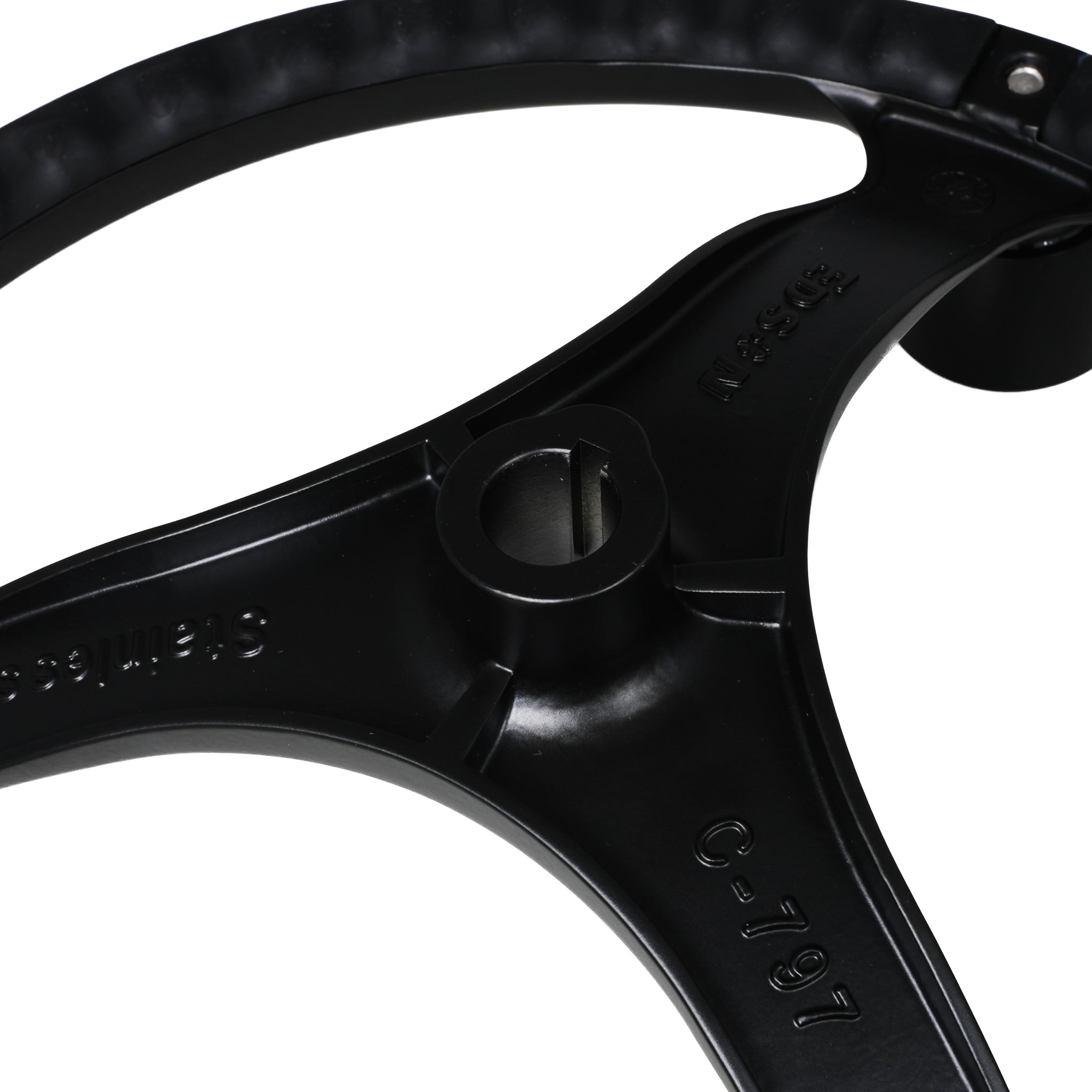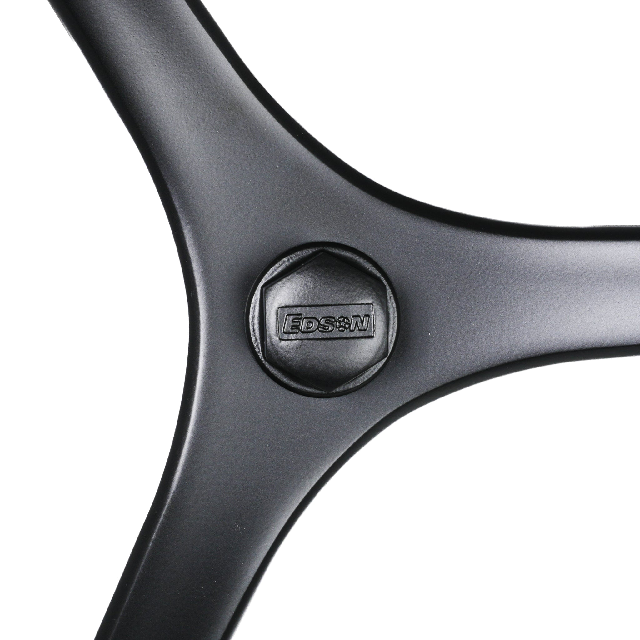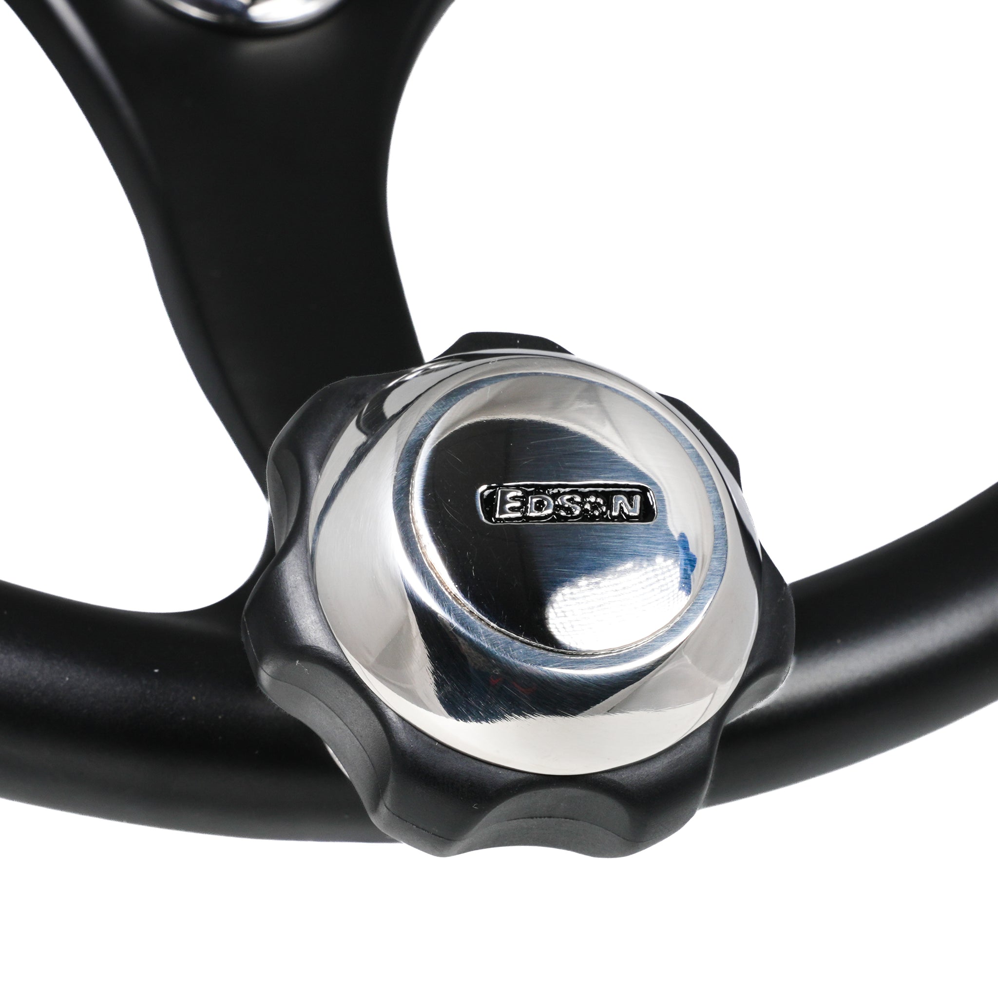 Edson's Special Ops ComfortGrip PowerWheel, with its rugged, durable matte black powder-coat finish, is ideal for a reflection-killing blacked-out upper helm installation, a custom flats skiff in the Florida Keys, or a center console chasing stripers.