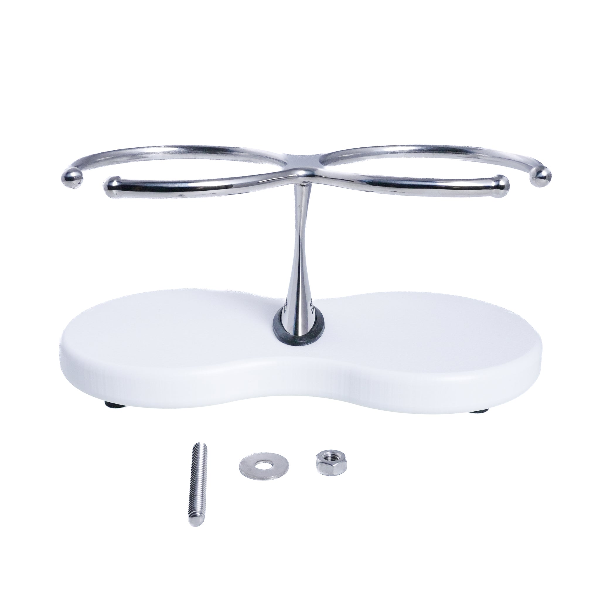 Drink Holder, Double, Stainless with White Poly Base.