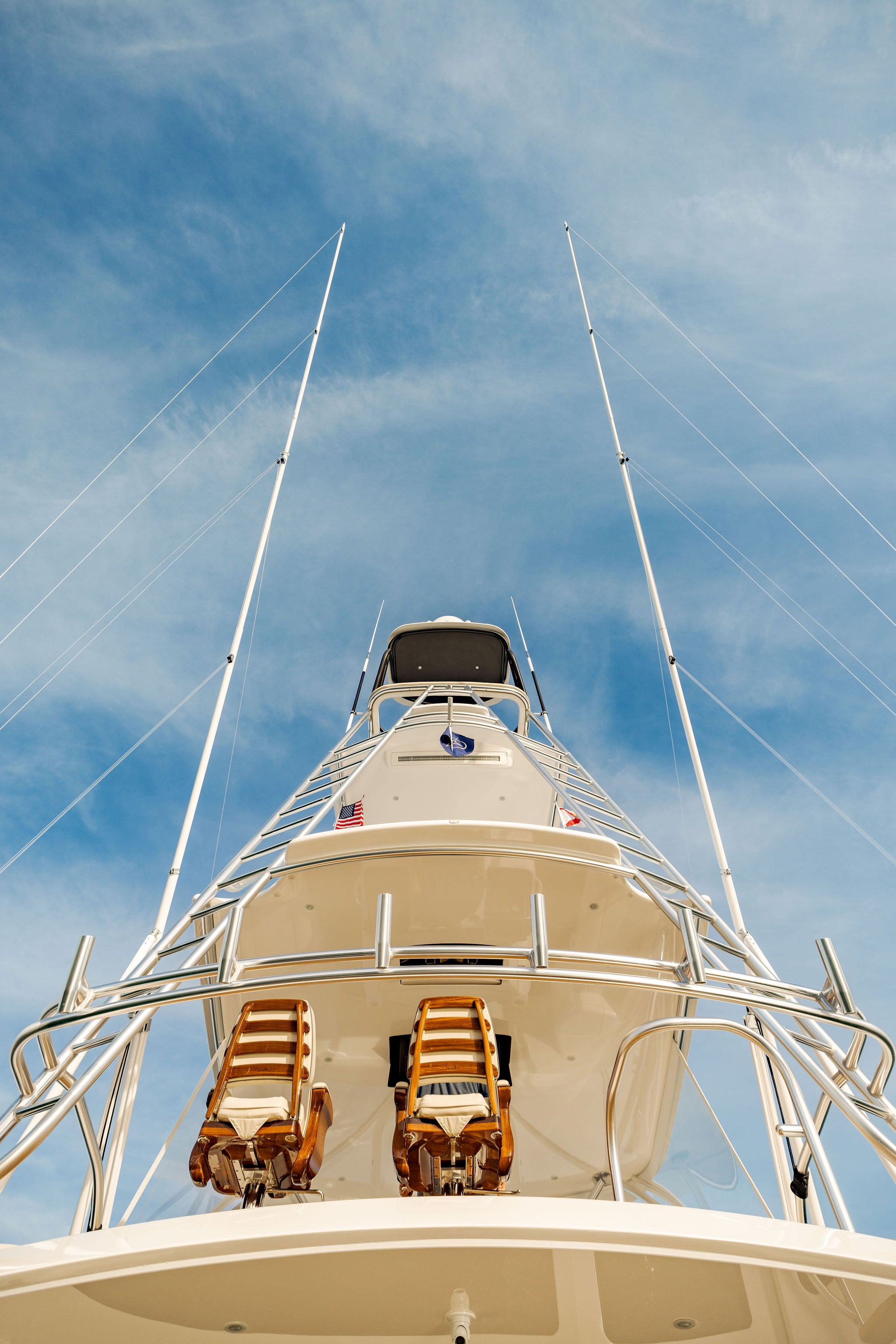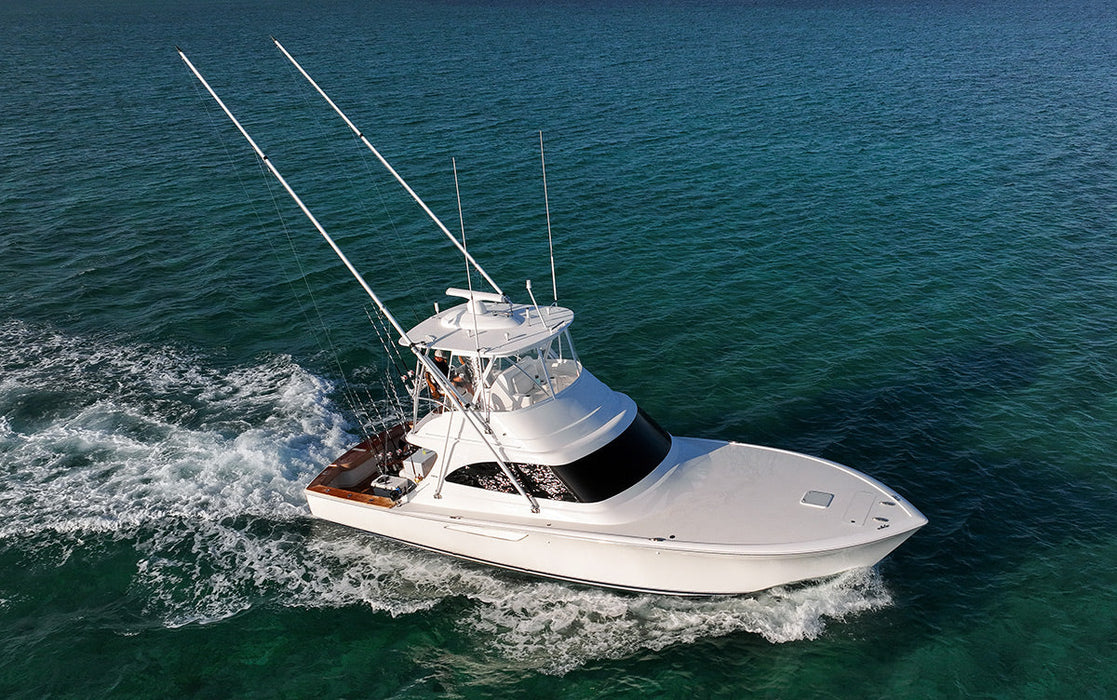 It was a historic day in 1947 when the Rybovich brothers splashed the cedar-planked Miss Chevy II. Among the many pioneering features displayed aboard the first custom sportfish ever built, aluminum outriggers with spreaders and stay wires were far superior to the archaic alternatives. But even as glimmers of the technological future were emerging, much would seem primitive today. With increasingly complex systems found aboard modern sportfish yachts, it has become apparent that aluminum outriggers with spreaders are objectively outdated.