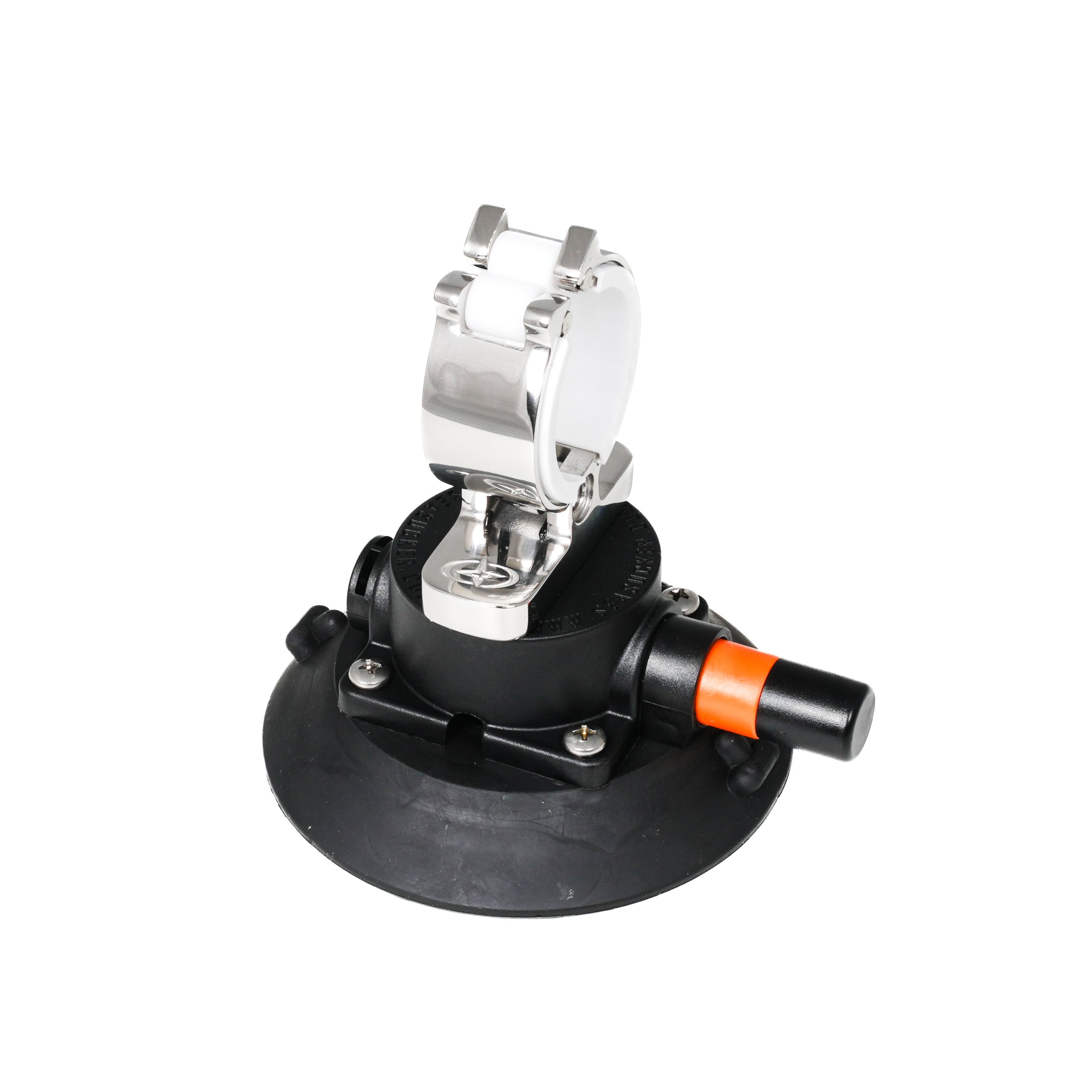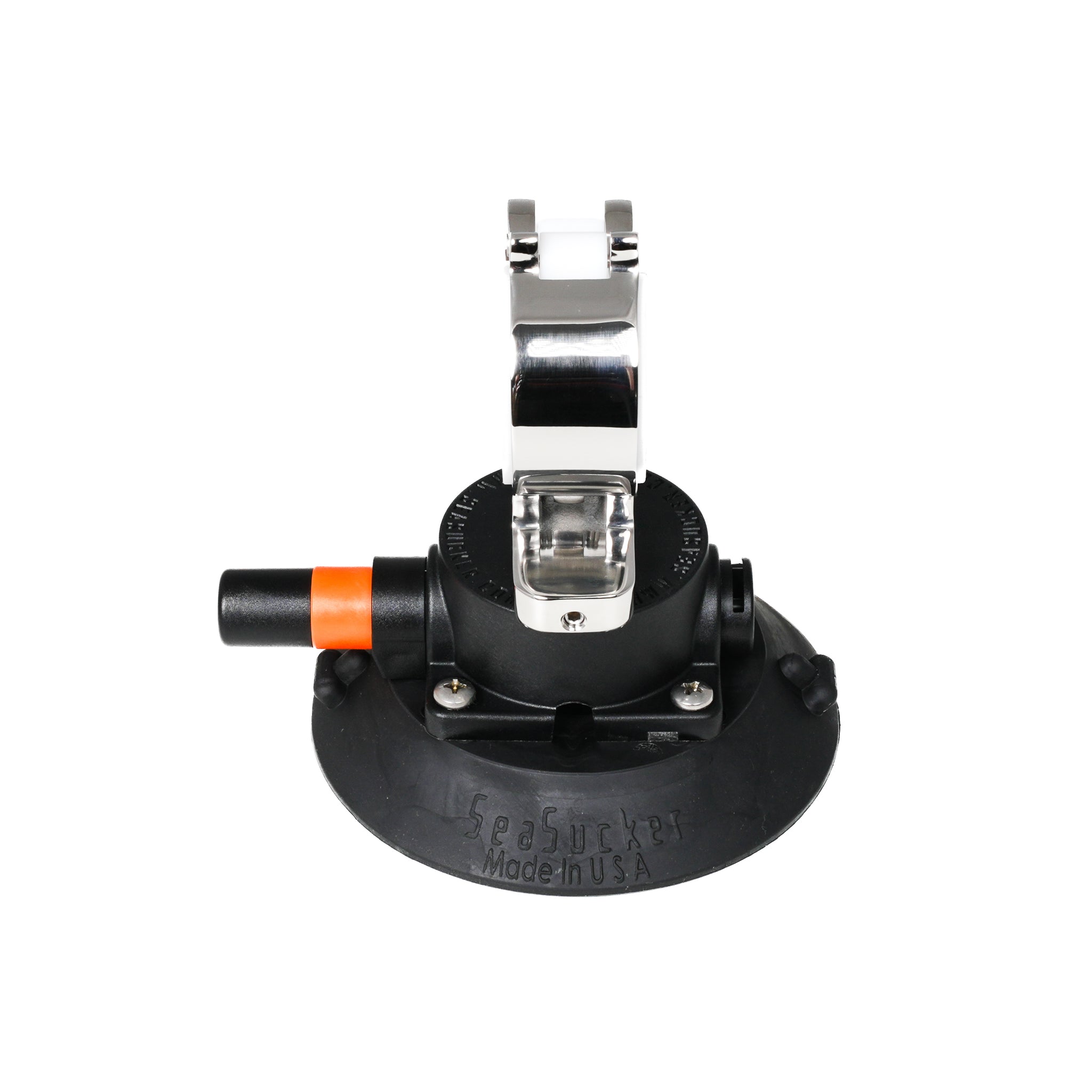 Our Rapid Release Clamp, equipped with a SeaSucker mount, provides a convenient solution for stowing and quickly releasing rods, our Ultrapole, gaffs, brushes, dredge booms, shade poles, and more. With a larger grip diameter than traditional rod racks, our clamps securely hold bigger accessories and release them when you need them most. Simply pull to engage the spring-loaded jaws with rollers for release; a gentle push will snap your accessory back into place. Our patent-pending design even allows for fast, one-handed operation.